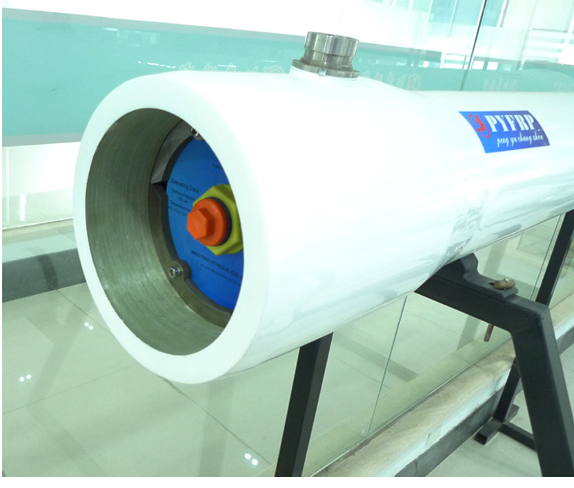 PYFRP玻璃钢膜壳,是反渗透系统里用来装RO膜的高压容器,核心作用是保护膜元件并承受高压。 它通常用玻璃纤维增强塑料(FRP)制成,通过电脑缠绕工艺生产,主打耐压、耐腐蚀、重量轻,特别适合工业水处理和海水淡化这类严苛环境。