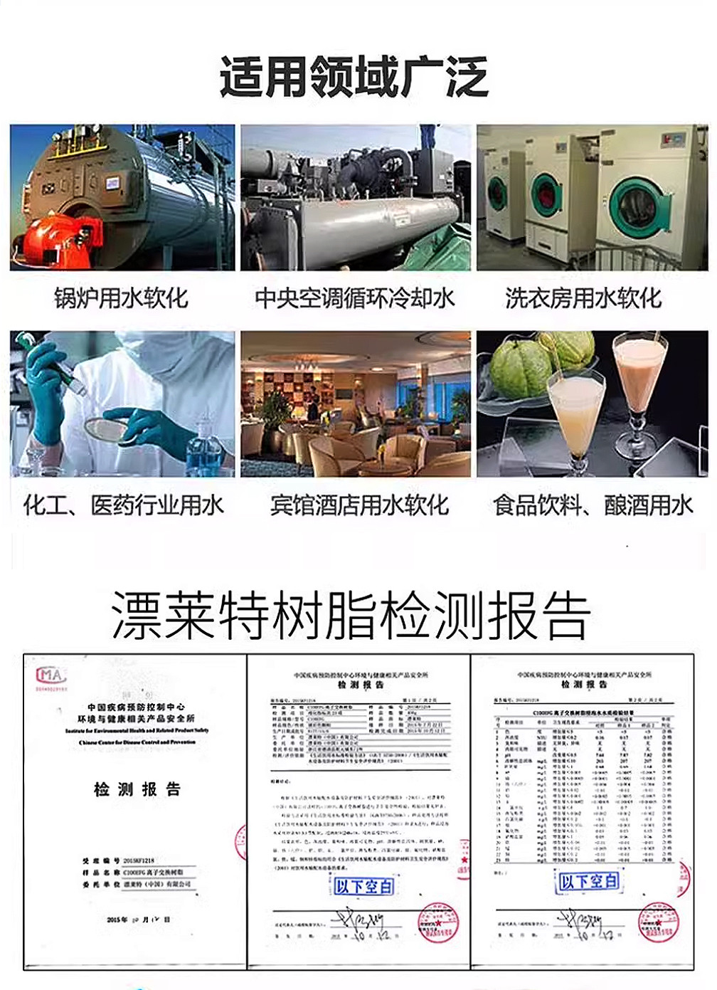 工业水处理:锅炉给水、冷却水循环、电镀废水处理等。